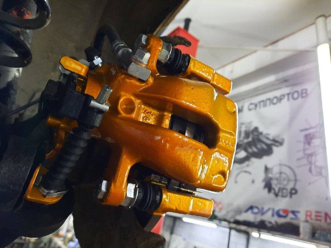 В сервисе обслуживал суппорта, которые уже немного износились, поэтому мастера перебрали тормозные цилиндры, колпачки и так далее. Все прошло хорошо!